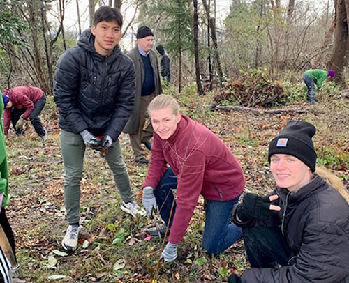 Group removes invasive plants at Thorndike Park. Other volunteers help with the Project Linus blanket project. Photo courtesy of Magnolia UCC |