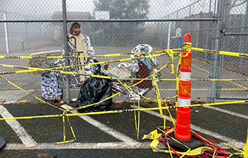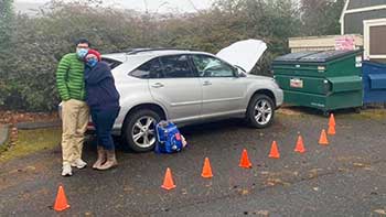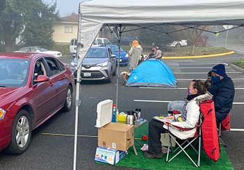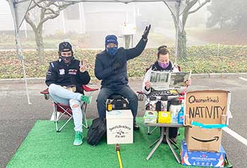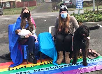 Richmond Beach UCC drive through pageant has vignettes with displaced Holy Family, stranded Holy Family, quarantined Holy Family and queer Holy Family. Photos courtesy of Staci Schulmerich. |