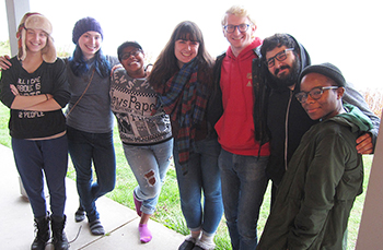 Amanda Agrellas, Renee Lumia, Bri Little, Leda Zakarison, Hunter Paulson-Smith, Daniel de la Rosa and Erica West at a fall retreat. |