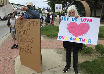 “There were only a handful of negative comments and ‘salutes,’ but mostly positive waves, honks and smiles,” said Becky Anderson, who retired in January as pastor of Newport UCC and still lives there.